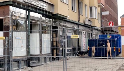 I grannfastigheten, Tornbergska huset härjar byggbolaget Baltic-gruppen med rivningsarbete efter en långdragen strid, där kommunen och Baltic-gruppen axel-vid-axel sablat ned umeborna och kulturvetarna. Butiker och Umeås bästa vegetariska restaurang har deporterats till nya lokaler. Tornbergs modehus till Rådhusesplanaden och Rost restaurang ett stycke bort på Skolgatan.